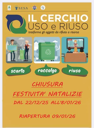 Si avvisano gli utenti che sabato 22 Ottobre 2022 il mercatino del riuso rimarrà chiuso.